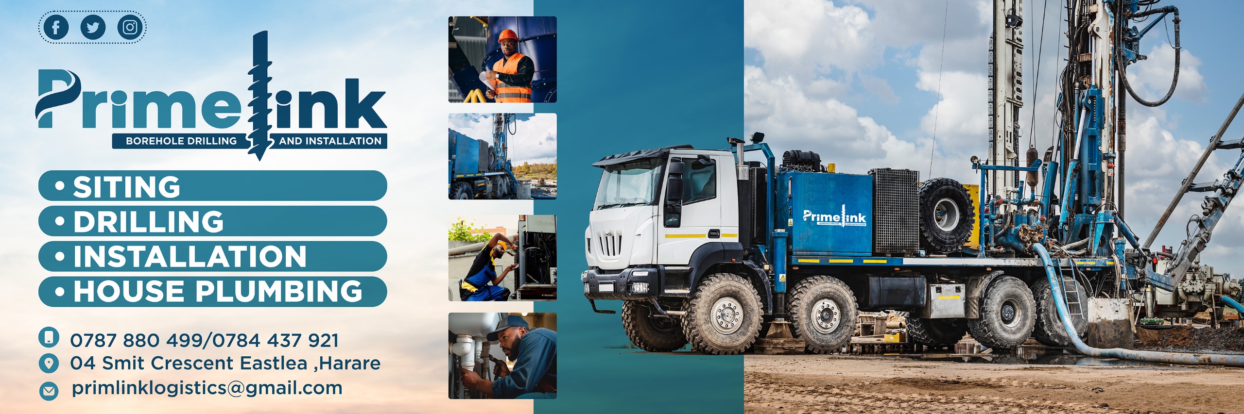 Borehole Drilling Borehole Drilling Borehole Drilling & Installations Siting Drilling Installation House Plumbing About Us Primelink is a solutions-driven company specializing in borehole drilling, solar energy systems, and professional installations for residential, agricultural, and commercial clients. Contact Details Address:4 Smit Crescent, Eastlea, Harare Mobile Numbers: +263 787 880 499+263 784 437 921 Email Address: info@primelink.co.zw Menu Overview Borehole Drilling Solar Systems Get in touch with us Contact us Facebook Instagram X-twitter